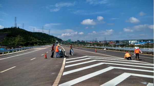 道路交通標線是以規定的線條、箭頭、文字等導向裝置劃于路面或其他設施上,管制引導交通和分散交通流的設施。道路標線分為:熱熔標線,常溫